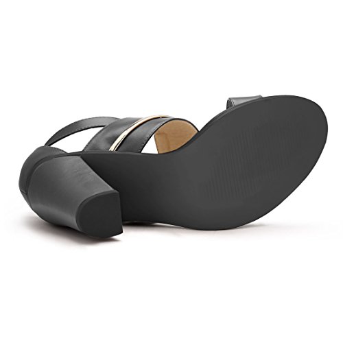 Studio : Allegra K Publisher : Allegra K Binding : Apparel Product Description A metallic strap embellishment adds eye-catching dimension to a block-heel sandal that is a contemporary-chic standout.