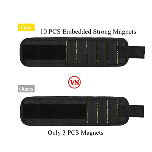 - Convenient and Practical - 10 strong magnets embedded in each wristband surround almost entire wrist for holding screws, nails, bolts, washers, drill bits. It is your best solution to having screws and nails at hand while working.
