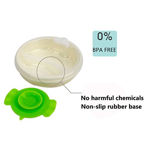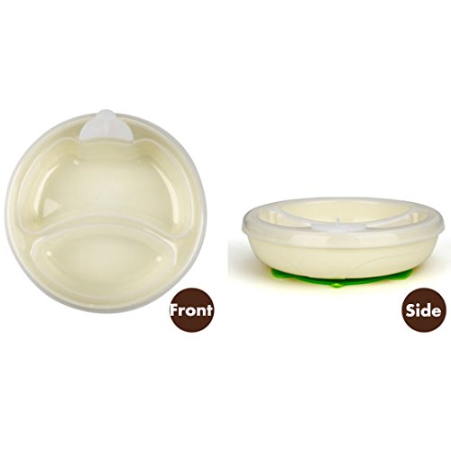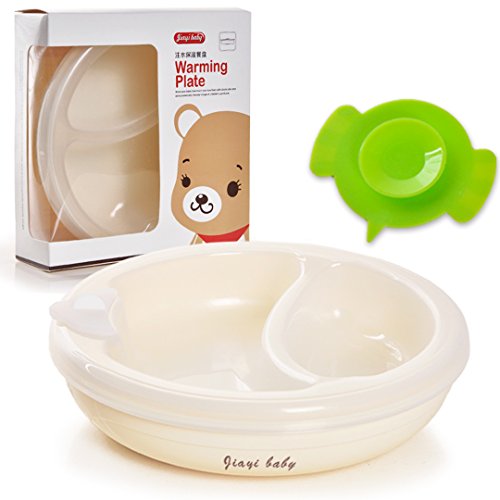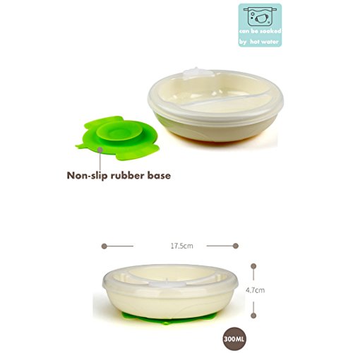 -. Feature : BPA, phthalate and pvc free / Size: 5in diameter; 3.4in H, chamber 1.7 inches / Stainless steel insert; Outside plastic never gets too hot / Suction base of bowl prevents messes and spills / Unique water chamber keeps food warm or cold