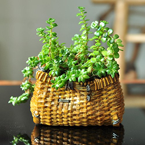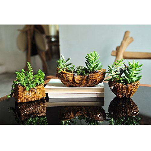 Top Collection 3.5-Inch Miniature Fairy Garden and Terrarium Woven Basket Functional Flower Pot for Succulents, Mini
