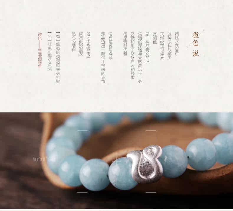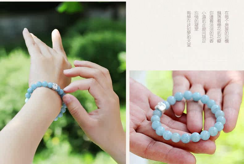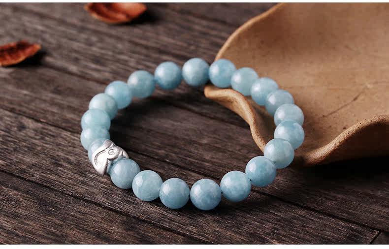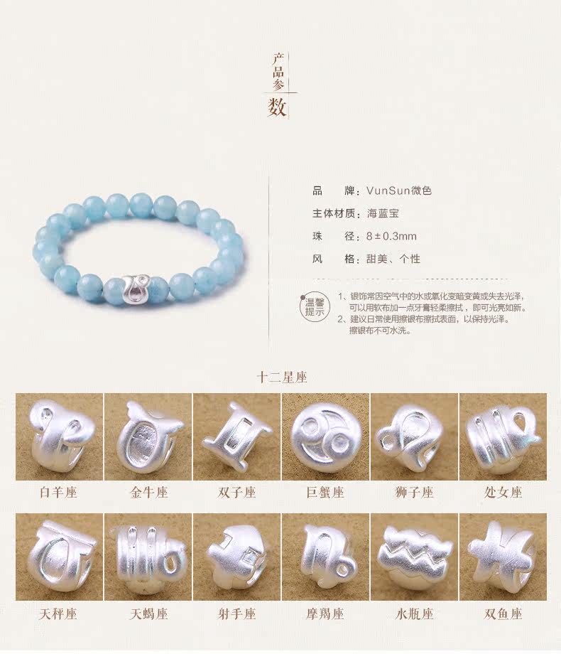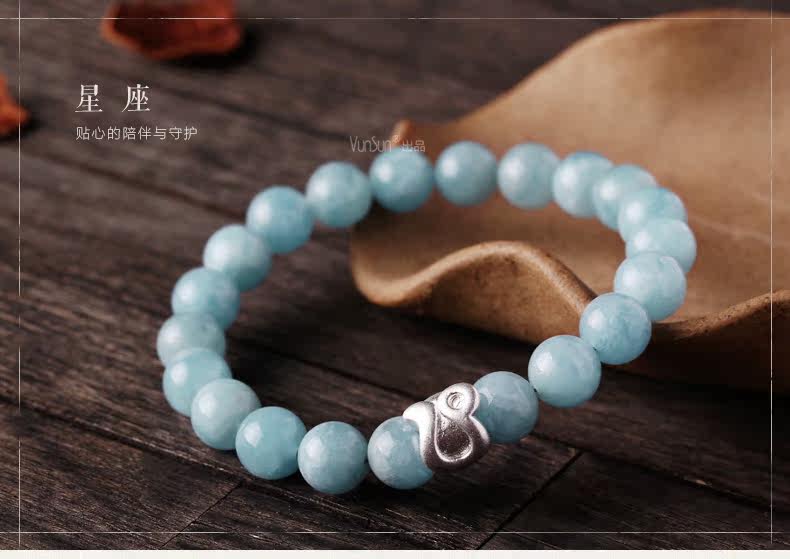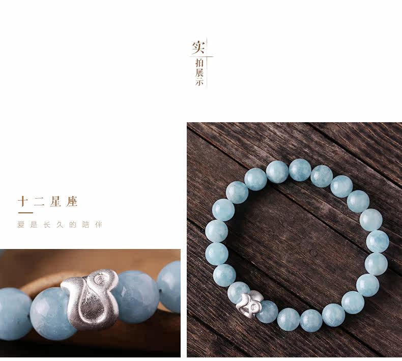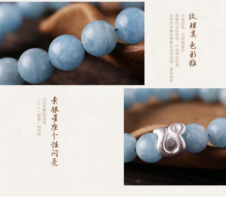 天然海蓝宝手链女 单圈十二星座蓝色手串925银简约文艺饰品