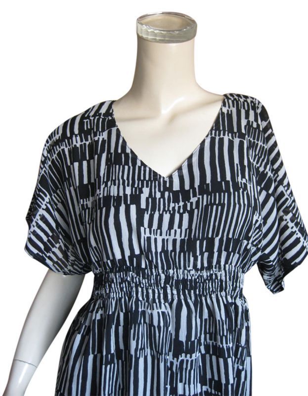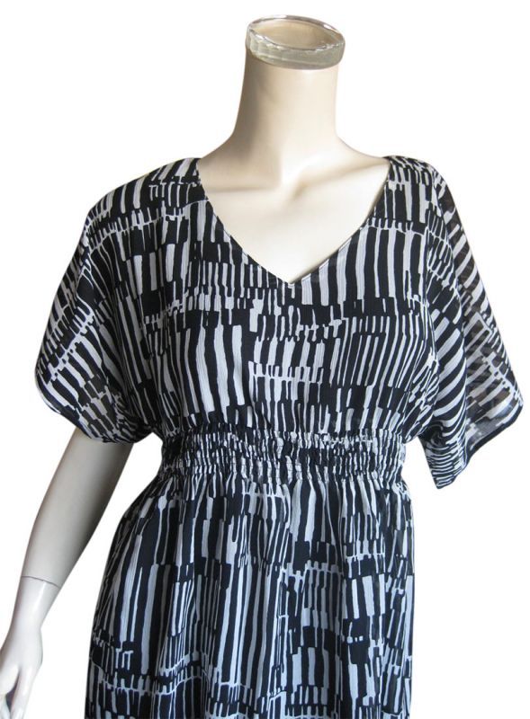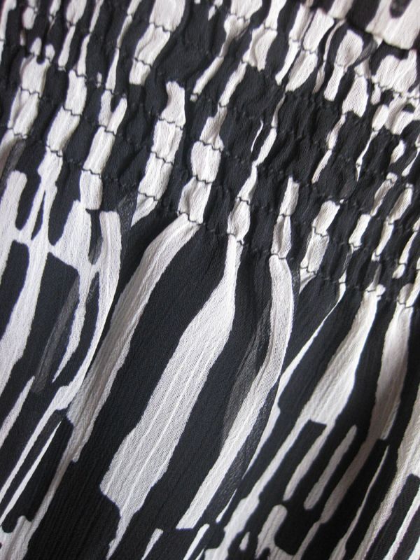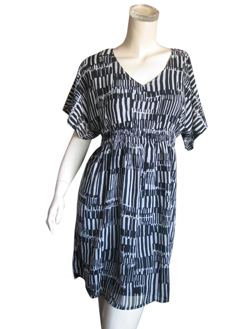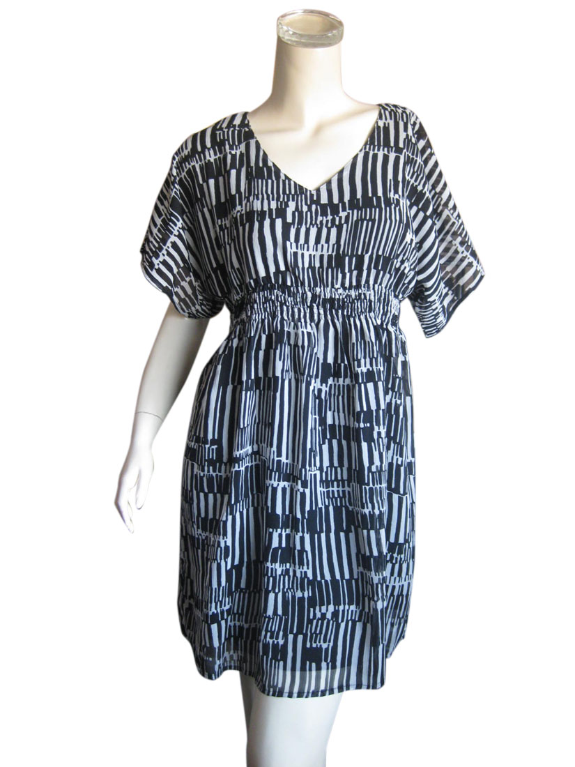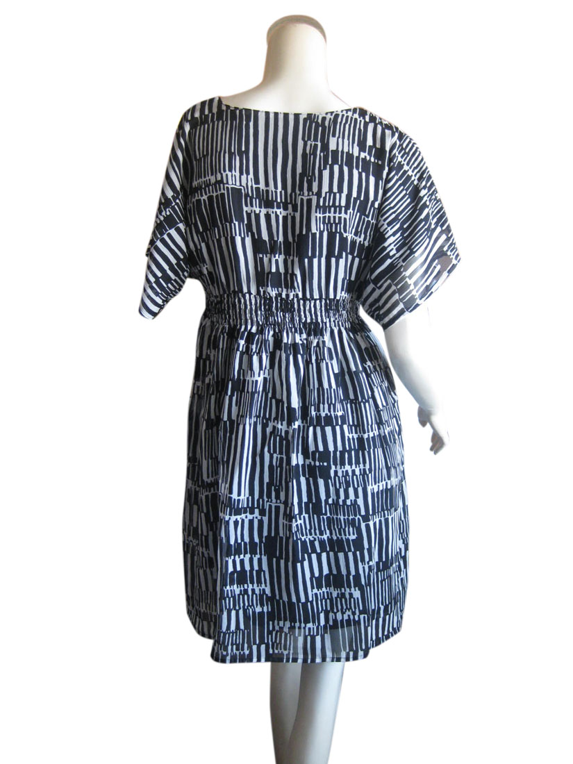 シフォン楊柳素材のモノトーン幾何学柄ワンピース