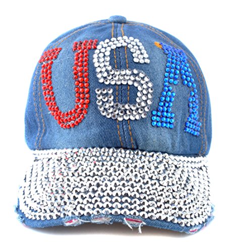 -. Title : Elonmo Letters USA Women Studded Bling Rhinestone Baseball Cap Sparkly Denim Hats Adjustable