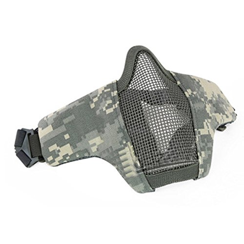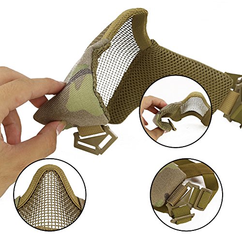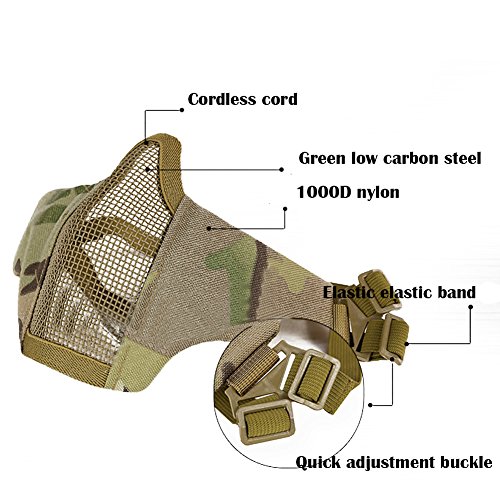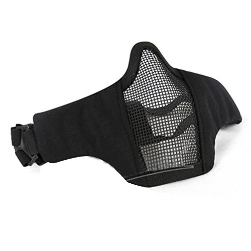 -. Feature : This low-carbon steel metal mesh face mask with soft padded nylon fabric, provides you the best protection for the face,nose and mouth / The holes on airsoft mask are small enough to keep an air soft pellet or paintball from smacking you in the face.Absolutely no problems being able to talk and breathe in this. / Fit for all young and adults, you can gently bent masks and googles to fit to your face better. / The mask has 2 elasticated straps,as well as an additional back-strap to ensure that mask couldn't slip, so it will never drop from your face when you are playing. / They can be folded which makes it easy to carry. Perfect for war game, paintball, hunting, shooting, cosplay and military purpose.