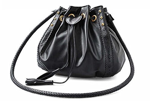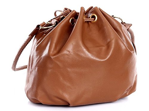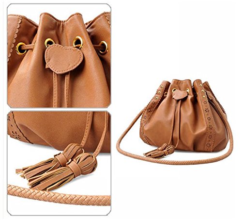 D'autres hauteurs Faux Calfskin Leather Tassel Drawstring Hobo Bag
