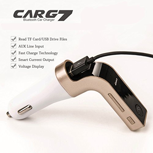 TIANSHILI FM Transmitter, Wireless Bluetooth Car Kit Charger with Mic/TF Card/USB Drive/AUX Play Hands-free calls, Smart USB Charging for iPhone, iPad, Samsung Galaxy and Other Android Phones-Gold