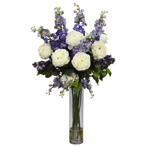 Nearly Natural 1220-PP Rose/Delphinium and Lilac Silk Flower Arrangement, Purple