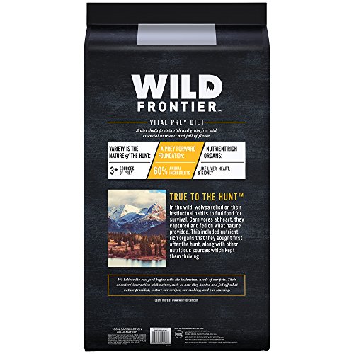 Contains (1) 24 lb. bag of WILD FRONTIER VITAL PREY Adult Dry Dog Kibble with Turkey & Duck, based on dogs' ancestral diets