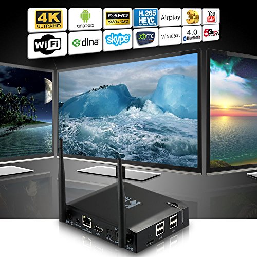 -. Feature : Fully Loaded: KIII, built for speed and developed with Kodi Media Center in mind. From the responsive interface to instant search results, everything about KIII is fast and fluid. It is all thanks to 1000M LAN, a robust 64 bits quad-core processor, a dedicated penta-core GPU, Android 5.1, improved Bluetooth 4.0 and 16GB of storage, even more equipped in KIII. / Entertainment ocean: With dual Wifi supporting 2.4GHZ and 5GHZ, KIII 4K Smart TV BOX connects your HDTV to an ocean of online entertainment. With millions of movies and TV episodes, KIII is an easy way to enjoy Netflix, YouTube, live and on-demand sports, news, music, photos, games, and more for second-to-none relaxation. Explore whatever you love will be so much easier. / Extra Capacity: KIII comes with 2GB of memory, 16GB of internal storage, a micro SD card slot for external storage. It makes the smart TV box another cloud station for you to enjoy over excessive channels, apps, games and more. / Home theater: AKASO KIII delivers incredible resolution, picture quality and best streaming media experience, which make this a true home theater experience. It now brings you 4K Ultra HD streaming capability, giving you a best-in-class television experience with true-to-life picture quality when used with compatible 4K Ultra HD TVs. Immerse yourself in the action with clear, vibrant 1080p video streaming. / Share on the big screen: KIII makes it work great with 4USB ports and HDMI 2.0 to share whatever is on your mobile including movies, TV shows, music, and photos with everyone in your living room using display mirroring, which works with devices from Google without any additional apps or software. Or, "fling" content from supported mobile apps like YouTube, and Netflix, to your KIII smart box, freeing your device up for web surfing, emailing, or texting.