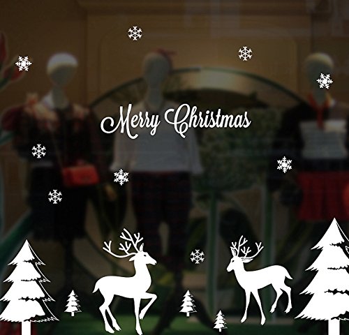 Mehome Christmas Window Stickers Christmas Tree Stars Snowflake Deer White Angels for Home Shop Window Coverings Wall Stickers Holiday Celebration Presents (B)