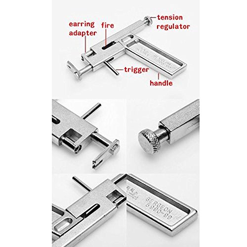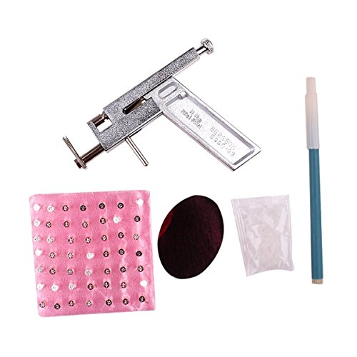 Steel Ear Body Lips Nose Navel Body Piercing Gun with 49 Pair Studs Set Silver