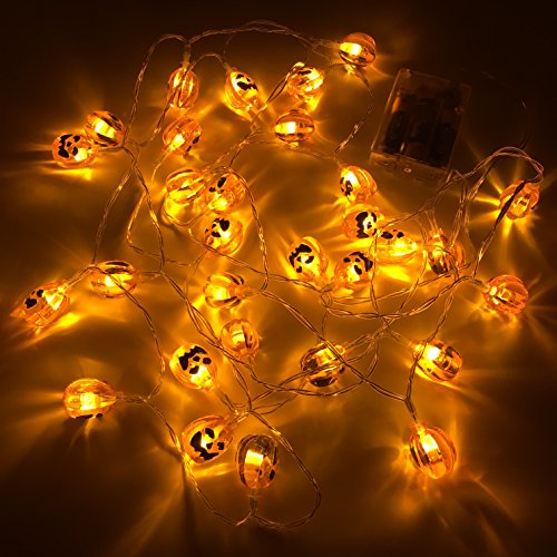 - String lights of 30 pumpkins on an well made cord. Battery powered,ON/OFF switch, quite easy to use. 3 AA battery needed(not included), easily operate, low voltage power, non plug-in.