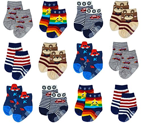 Liwely 12 Pairs Baby Boys Socks, Anti Slip Skid Socks with Grips for 3 - 12 Months Infants