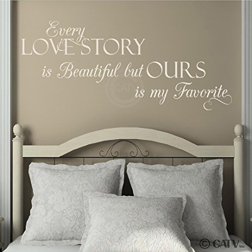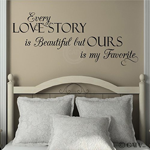 (12.5x30) Every Love Story Is Beautiful But Ours Is My Favorite (M) vinyl lettering decal home decor wall art saying sticker quote (Black)