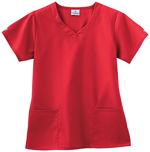 Fundamentals by White Swan Women's 3 Pocket V-Neck Solid Scrub Top Red