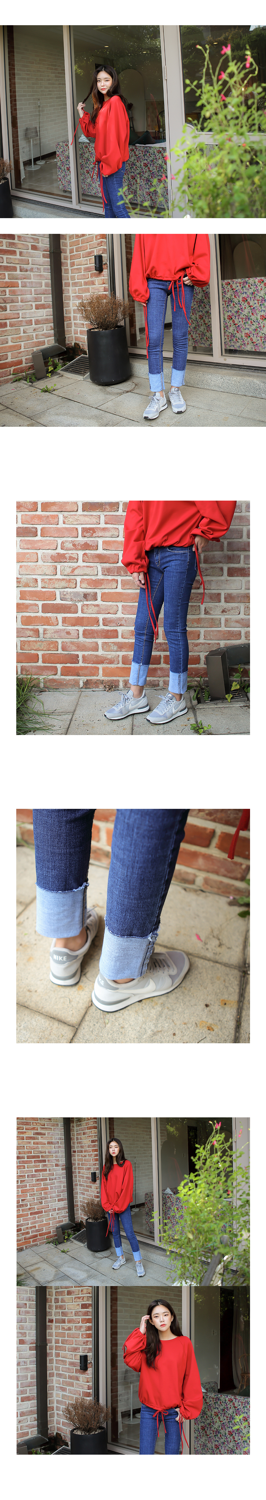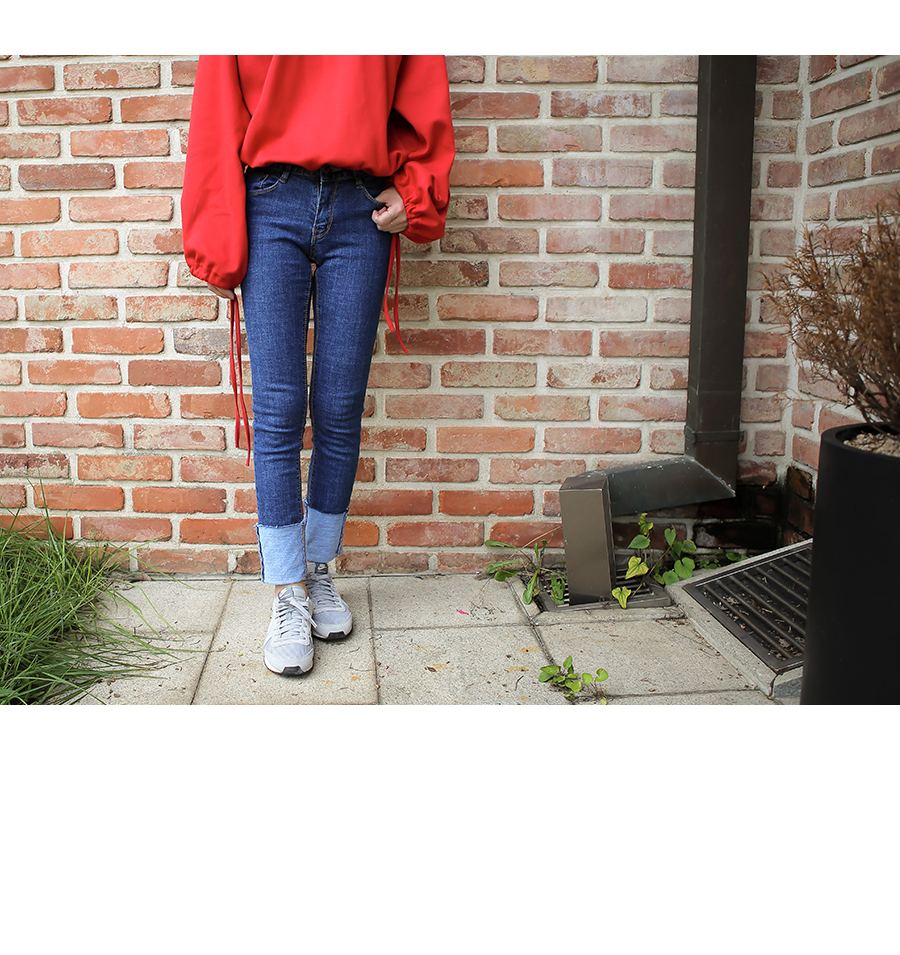 군더더기없는 기본워싱에 롤업디테일을 더해주어