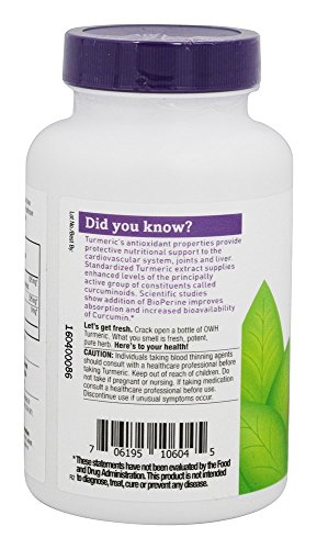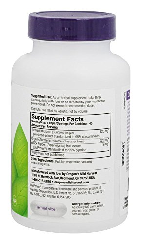 Studio : Oregon's Wild Harvest Publisher : Oregon's Wild Harvest Binding : Misc. Product Description Oregon's Wild Harvest believes that the combination of whole organic Turmeric and Turmeric standardized to 95% curcumin creates a more balanced formulation that best fits both traditional herbal knowledge and modern scientific research.?Scientific studies show that the addition of Black Pepper (BioPerine®) improves absorption of curcumins, increasing bioavailability. 0