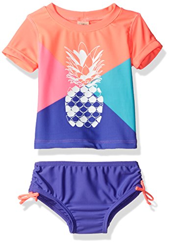 Short sleeve infant rash guard multicolor top with pineapple print and bottom with side bow