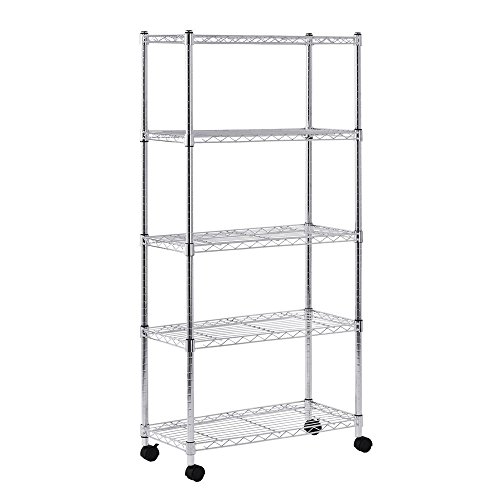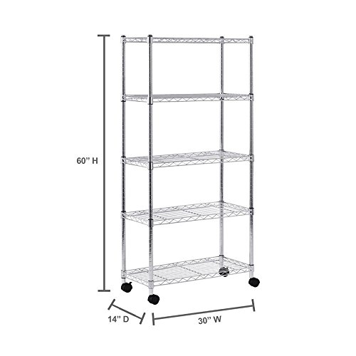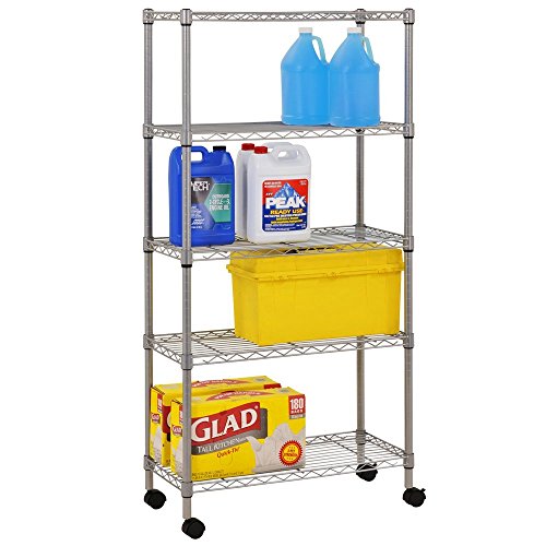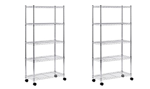 Sandusky MWS301460 Mobile Wire Shelving Unit - 5 Tier with 2 Inch Nylon Casters, Silver (Pack of 2)
