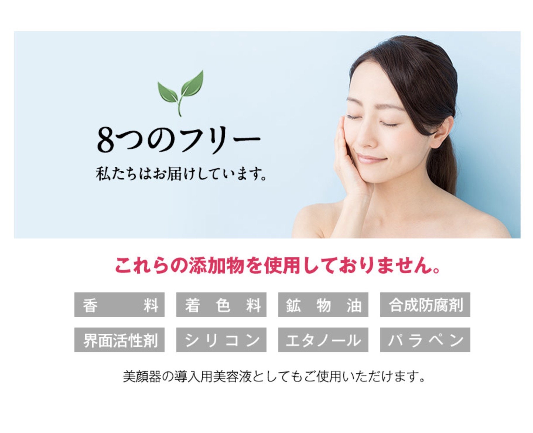 【Feature 3/8 free (fragrance, coloring agent, mineral oil, synthetic preservative, surfactant, silicone, ethanol, parabens)】 It can be used safely as an introduction beauty solution for beauty facial equipment.