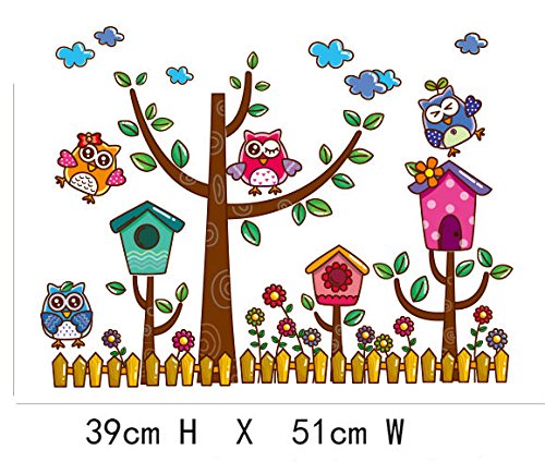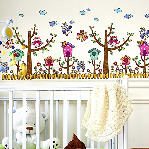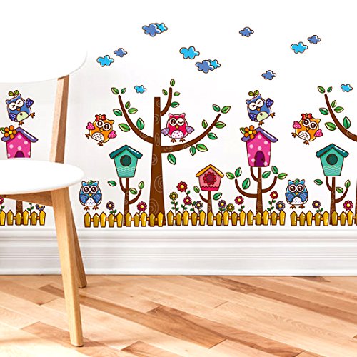 -. Title : SWORNA Nature Series Owls House Family Removable Vinyl DIY Wall Art Mural Sticker Decal Decor for Kids Baby Girl Boy Bedroom Learning Playroom Kindergarten Nursery School Skirting Line 15”H X 20”W