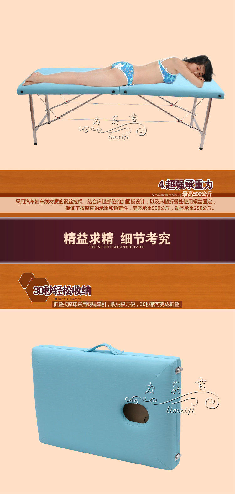 Foldable stainless steel massage table