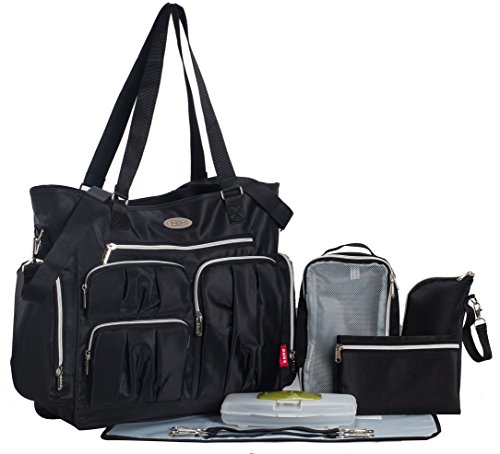 SoHo Collection, Times Square 8 pieces Diaper Tote Bag set (Classic Black)