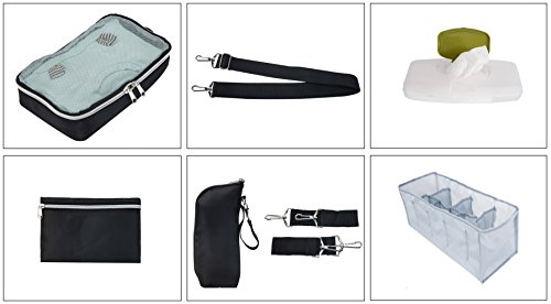 6. Insulated zippered Bottle bag, fits Most size bottle. 7. A pair of Grips strollers attachments 8. Adjustable shoulder strap for your need. ** Stuff animals and baby bottle in the pictures are not included in this set **