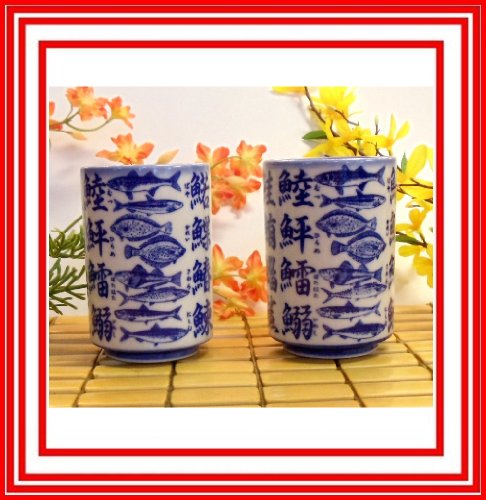 -. Brand : Fuji -. Color : blue -. EAN : 0731015080809 -. Feature : Dimension of each cup: 2-3/4" (diameter) x 4" (tall); capacity: 8 oz / Porcelain with beautiful blue fish picrures and Japanese calligraphy names design / Collectable / Made in Japan / Perfect for dinner or party -. Label : Fuji -. Manufacturer : Fuji -. ProductGroup : Kitchen -. ProductTypeName : KITCHEN -. Publisher : Fuji -. Studio : Fuji -. Title : 2 Pc Japanese Style Tea Cups with Blue Fish Pictures and Calligraphy Names on the Surface -. UPC : 731015080809