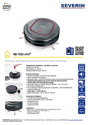-. Title : Severin RB7025 Saugroboter, chill, Laufzeit ca. 90 min, Inhalt ca. 350 ml, platingrau / granatrot / schwarz