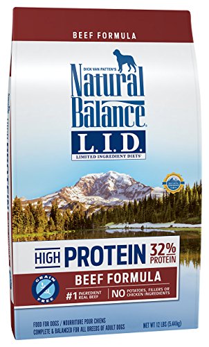 Feed your dog Natural Balance L.I.D. Limited ingredient diets high protein dog food. Free from grains, potatoes, filler and chicken ingredients, this true L.I.D. Features one Animal protein source and two Primary carbohydrate sources, helping you avoid ingredients commonly associated with food sensitivities. This dog food is formulated with 32% protein – the highest CRUDE protein level among leading limited ingredient dog food brands – and features real premium quality beef as the #1 ingredient.Feature