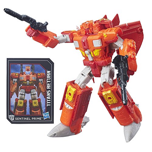 -. Binding : Toy -. Brand : Transformers -. Color : multi-colored -. EAN : 0630509424337 -. Feature : Voyager Class Sentinel Prime and Titan Master Autobot Infinitus figures / Triple Changer Sentinel Prime figure changes from robot to space jet to train / Titan Master figure becomes the head for the Sentinel Prime figure / Includes Voyager Class Sentinel Prime figure, Titan Master Nucleon with Galvatron, cannon accessory, collector card, and instructions / Titan Master figure works with other figures (see description) -. IsAdultProduct : 0 -. Label : Hasbro -. Manufacturer : Hasbro -. Model : B6459 -. MPN : B6459AS0 -. PackageQuantity : 1 -. PartNumber : B6459AS0 -. ProductGroup : Toy -. ProductTypeName : TOYS_AND_GAMES -. Publisher : Hasbro -. Size : 6 inches -. Studio : Hasbro -. Title : Transformers Generations Titans Return Autobot Infinitus and Sentinel Prime -. UPC : 630509424337 -. Warranty : No Warranty