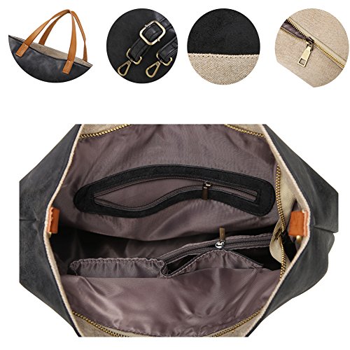 -. Feature : ★Zipper closure / ★4.13" top-handle drop / ★Convertible strap include / ★Soft PU leather, durable handmade flax, genuine leather handles / ★Has 1 zippered pocket, 1 interior slot pocket, 2 slot pockets, 2 roomy compartments