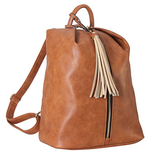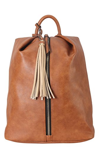 -. Title : Diophy Soft PU Leather Front Zipper Backpack with Tassels Décor Womens Purse Handbag MY-6002