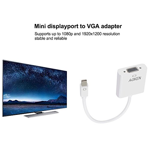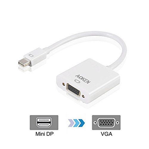 MINI DP to VGA,Aoken Gold Plated High Speed Mini DisplayPort to VGA Cable male to female, Thunderbolt to VGA Adapter Converter in White for Macbook Air/Pro iMac Laptop PC Surface Pro