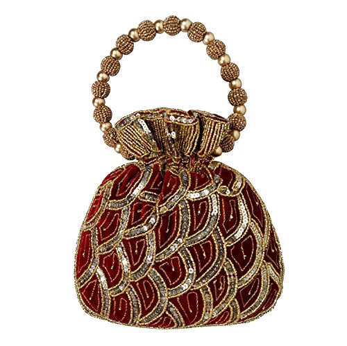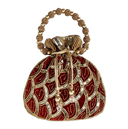-. Brand : Clubb -. Color : Maroon -. Department : womens -. Feature : Drawstring closure. / It's a good idea for keeping small items, such as jewelry, coin, and etc. / Single Compartment, Made in India / Handmade Indian Handbag Pouch. -. PackageQuantity : 1 -. ProductGroup : Shoes -. ProductTypeName : HANDBAG -. Title : indian beaded potli handbag embroidered bridal women wedding clutch party silk