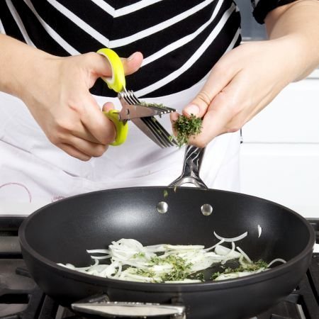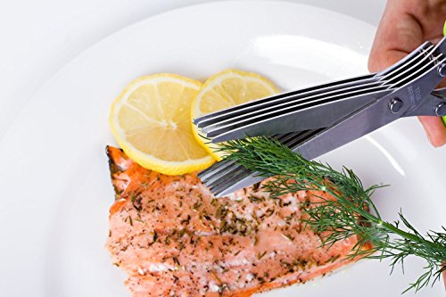 • COOKING WITH EASE. Bring the flavors from your favorite herbs into your kitchen easily and effectively. Just a couple snips from your finely balanced 5 bladed herb scissors and you get the same results as ten snips from regular kitchen shears.