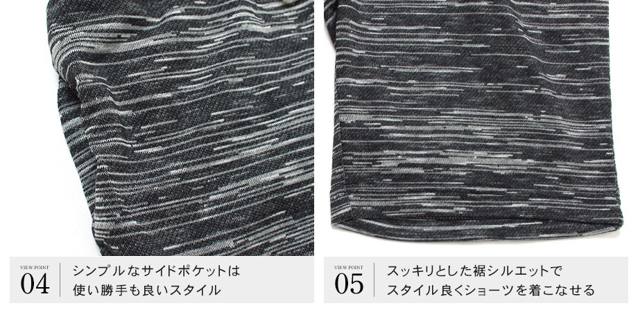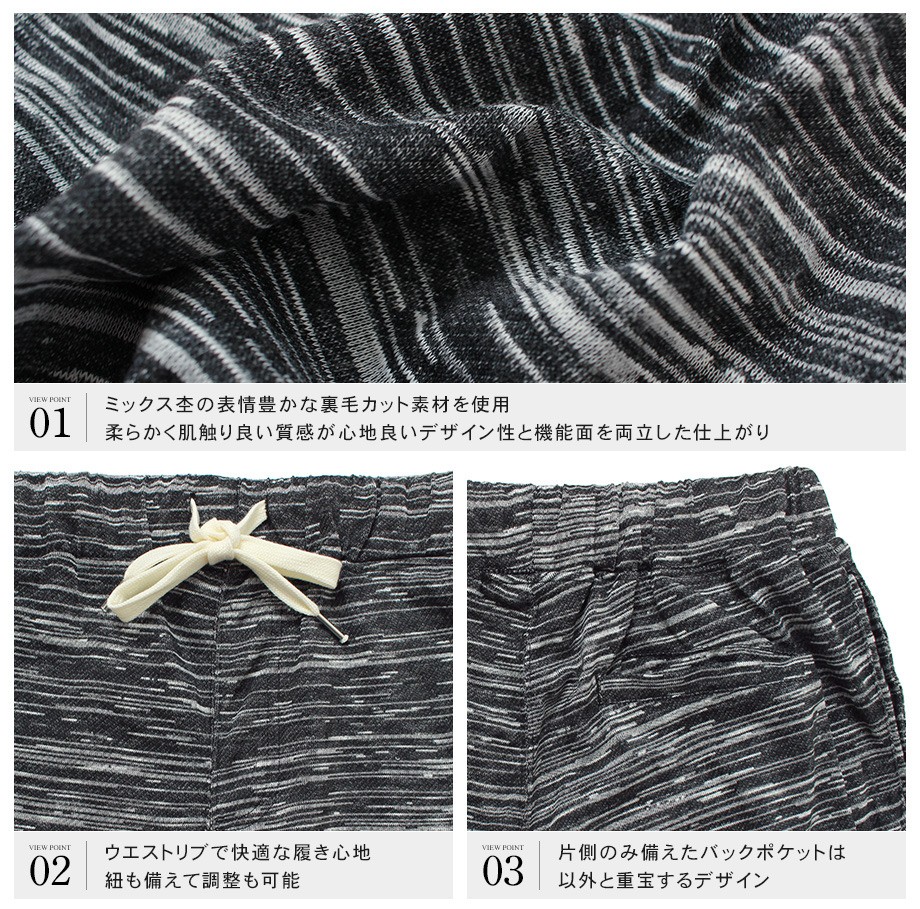 柔らかな質感の裏毛生地が肌触り良い仕上がりのショートパンツ。ミックス調の柄目もこなれた印象でスタイリングしやすいデザイン。シルエットもコンパクトなアイテムなので大人のショーツスタイルが作れます。夏場に活躍してくれる人気アイテムでおすすめです。