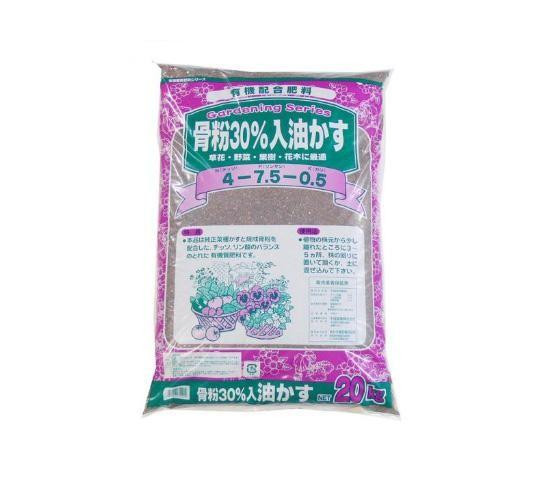 チッソ成分の多い純正菜種かすとリン酸成分の多い焼成骨粉を配合した、チッソ・リン酸のバランスのとれた有機質100%肥料です。 製造国:日本 素材・材質:肥料 商品サイズ:73×49×12cm 内容量:20kg 仕様:粒・粉ミックス ※サプライヤー直送品 ご注文後3~4営業日後の出荷となります【商品名】あかぎ園芸 骨粉30%入油かす(チッソ4・リン酸7.5・カリ0.5) 20kg