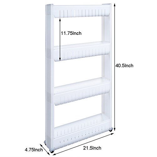 1208S Storage Cabinet Organizer Rolling Pull Out Cart Rack Tower with 4 Wheels Solutions for Narrow Spaces in Laundry Kitchen Bathroom Apartments (4-Tier)