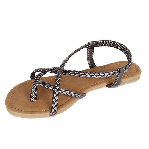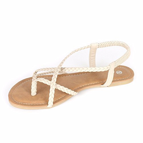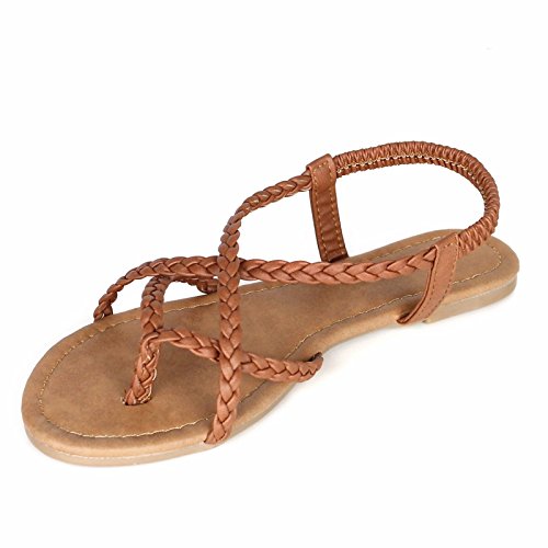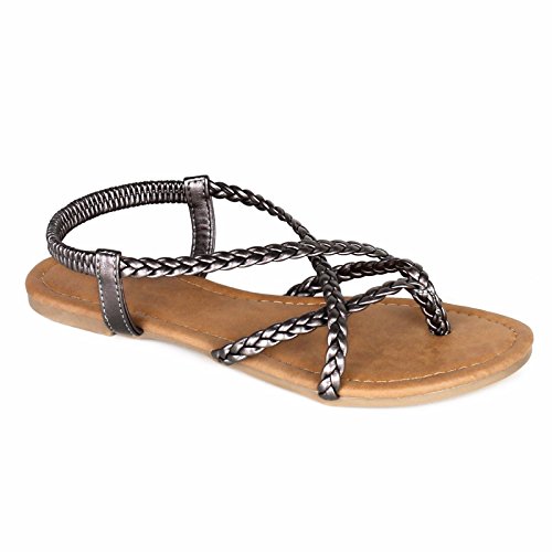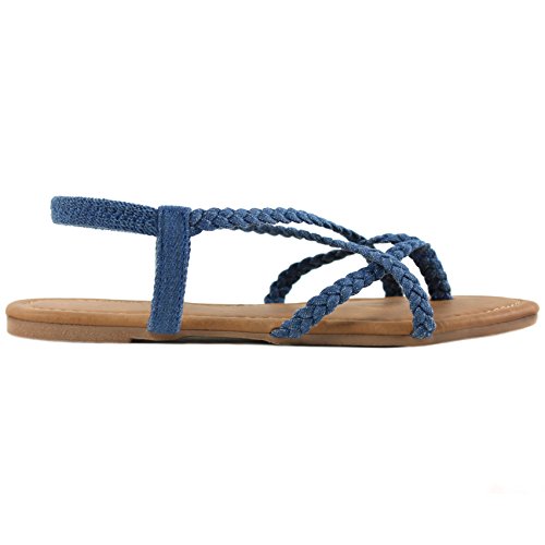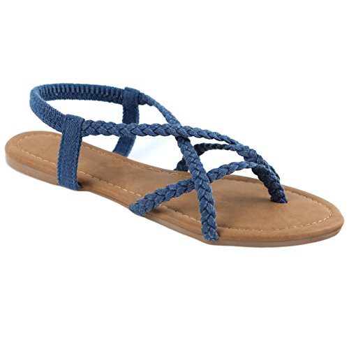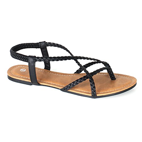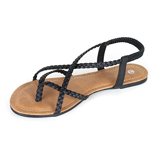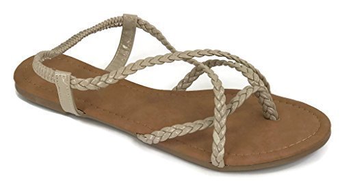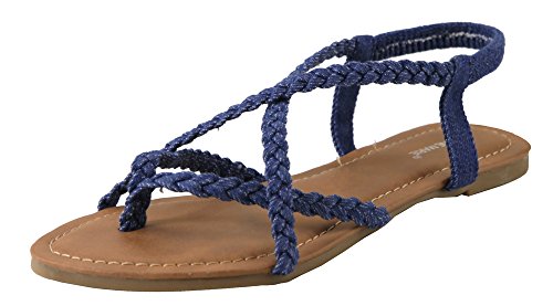 ANNA Women's Braided Strappy Gladiator Flat Sandal Y-Strap Thing Flip Flop Sandals