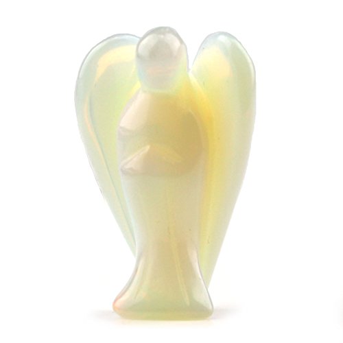 Hand Carved 2.6" Gemstone Crytals Pray Angel Reiki Healing Figurine, Home Decor Statues (Opalite)