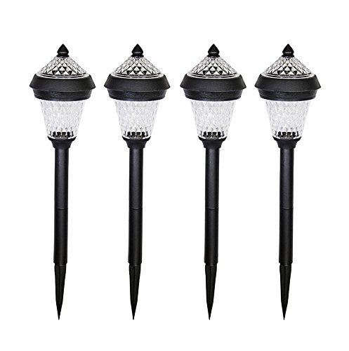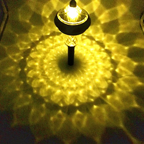 4pcs PACK Solar Landscape Lights Dual LED each in upper and lower lampshade provide amazing feature at night. Energy Efficient - comes with solar powered panel on an 8 inch. garden stake - giving you 6-10 hours of continuous outdoor lighting after a full charge.