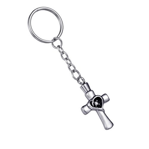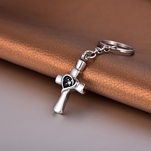 Forever Love Crystal Heart in Cross Ash Keychain, FCZDQ Cremation Jewelry Urn Pendant Memorial Keepsake