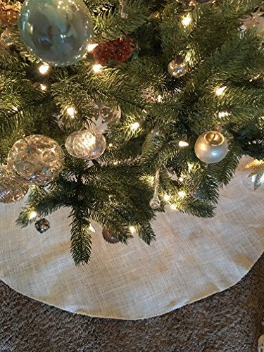 46" Ivory Burlap Christmas Tree Fabric Skirt - Perfect with Any Decor - Fits Full Size Trees and UP