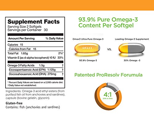 High-potency: Just two Soft-Gels contain 1500 mg of omega-3 fatty acids for maximum anti-inflammatory benefits.High concentration: 93.9% omega-3 with high ratio of EPA to DHA (4:1).Guaranteed freshness: Packaged in individual blister packs to help prevent spoilage and fishy burps.Sustainable sourcing: Derived 100% from wild-caught sardines and anchovies from the pristine waters off the coast of Peru.Purity: Gluten-Free, Soy-Free, Kosher, No Artificial Flavors, Colors or Preservatives. NSF Tested and Certified by NSF: Verified product ingredients, ensuring your product does not contain unacceptable levels of contaminants & has demonstrated conformance to currently recommended industry cGMPs for dietary supplements.