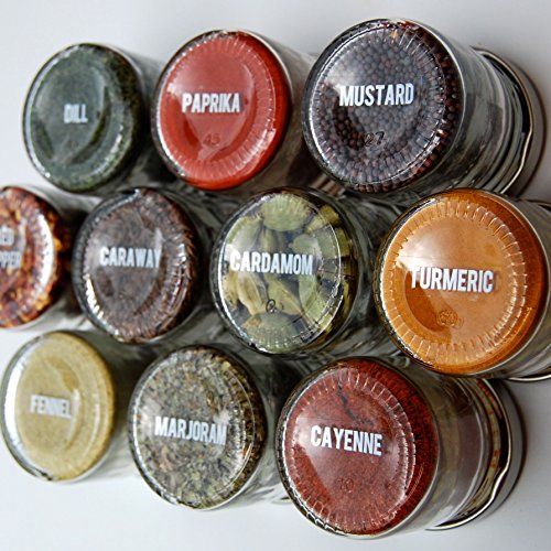 - Feature : Clear 1" round labels. Choose either black or silver text. Professionally printed in the USA with waterproof ink. / Will adhere to paper, plastic, metal or glass. / Sized to fit in the center of 1.5 oz hexagon jar lids. Will need to trim to fit if putting on the bottom of our 1.5 oz. hexagonal glass jars. / Set includes 110 spice names + 2 blank write-on labels. (See complete list of spice names in product description) / Jars NOT included. Please see our DIY Magnetic Spice Jar Kits to purchase magnetic jars with labels.