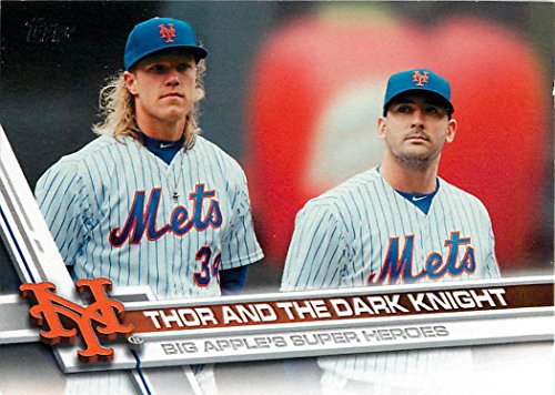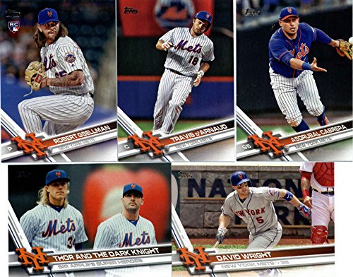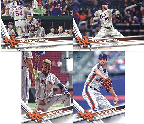 It contains all Mets cards from series #1 and #2 including David Wright, Noah Syndergaard (2 cards), Michael Conforto, Curtis Granderson, Asdrubal Cabrera, Jacob DeGrom, Wilmer Flores, Lucas Duda, Gabriel Ynda, Neil Walker, Steven Matz, Jay Bruce, Jose Reyes, T.J. Rivera, Addison Reed, Yoenis Cespedes, Gavin Cecchini, Robert Gsellman, Seth Lugo, Matt Harvey, Jeurys Familia, Travis D'Arnaud, Matt Reynolds, Zack Wheeler, a "Super Heroes" card and a Mets Team card.