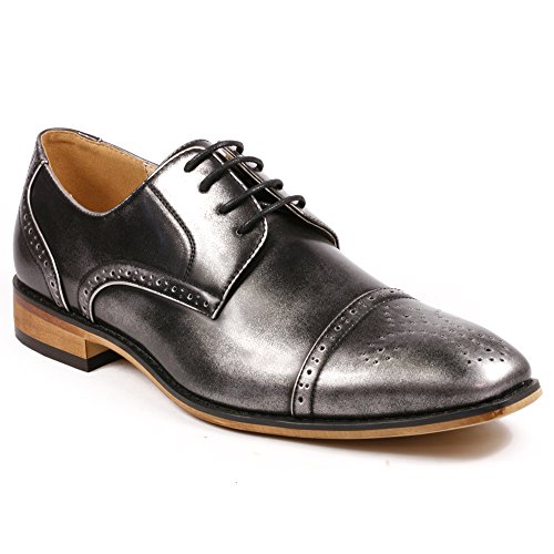 UV Signature UVS20 Men's Silver Gray Cap Toe Perforated Lace Up Oxford Dress Shoes