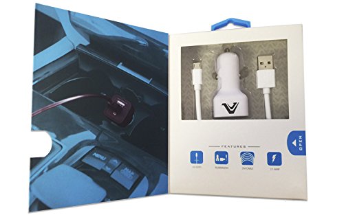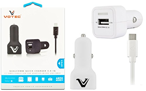 Qualcomm Certified Votec Rubberized Quick Charge 3.0 USB Car Charger + 6.5ft Micro USB Cable (White)
